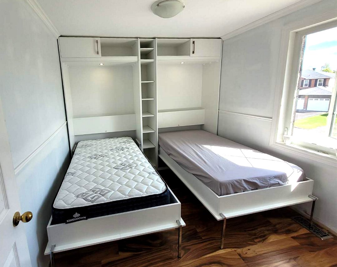 Les formats des lits sont standards. Ils sont disponibles en format simple, double et grand mais toutes les unités de rangement, LA MOULURE et l’éclairage sont optionnels et personnalisés selon vos gouts et vos besoins.