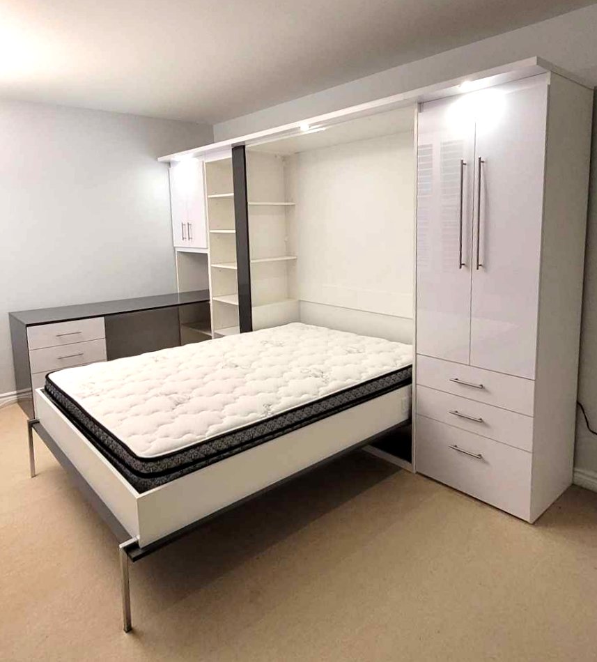 Wall bed sizes are standard. They come in single, double and queen size. All side storage and add ons such as desks, side units & lights are optional & customized to best suit your needs and style. See printable pdf form for all specific measurements.