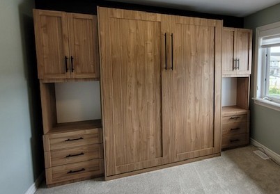 Modern shaker door style in melamine, units are custom and can be designed to suit your needs.